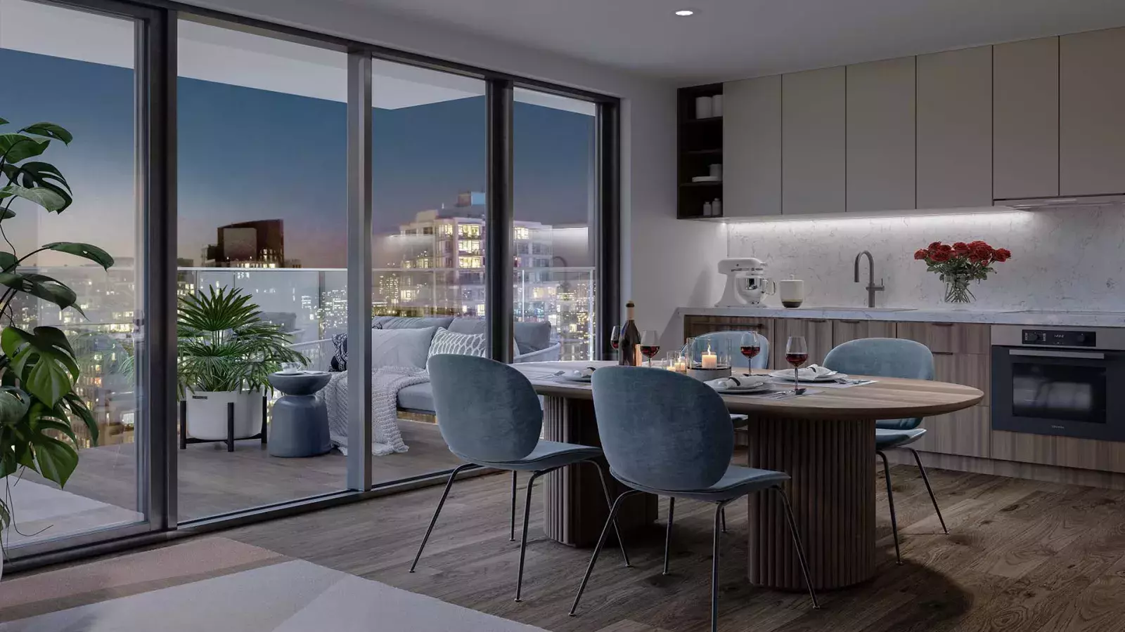 Block's 2C open concept living space makes cooking and entertaining a seamless experience. With an impressive Fulgor Milano and Miele appliance package, eye-catching two-tone cabinetry, and polished quartz countertops, this kitchen is fit for a chef. The 2 bedroom + den home has a smart layout offering privacy between the two bedrooms along with spa-like bathroom experiences, a spacious balcony, and a generously sized primary walk-in closet with built-in organizers.