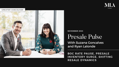 November 2023 Greater Vancouver Real Estate Market Insights Welcome to the November 2023 episode of the Presale Pulse, a real estate show brought to you by hosts Ryan Lalonde and Suzana Goncalves. Watch the video to understand the latest macroeconomics, presale, and resale trends over the last 30