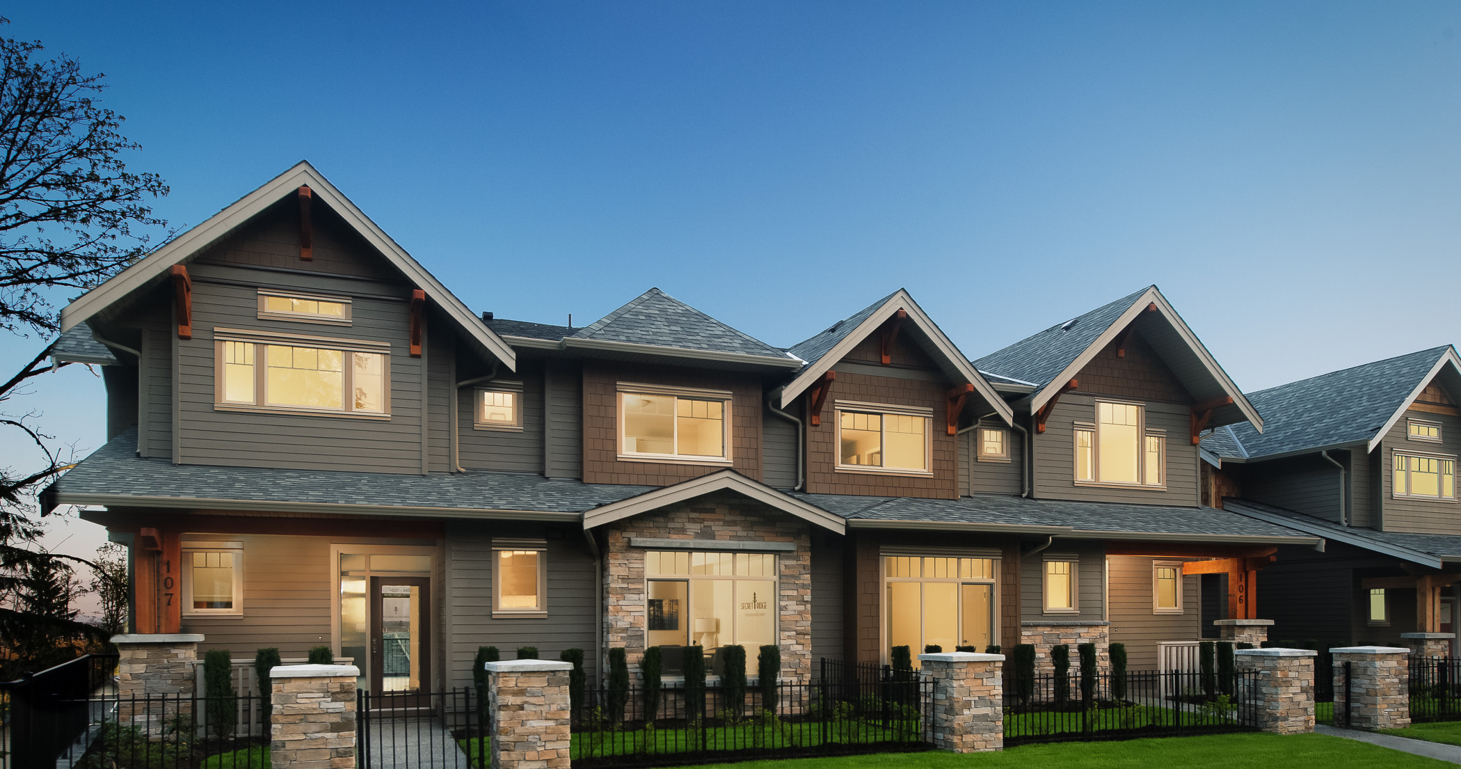 Secret Ridge is a collection of 74 craftsman designed creekside residences in the heart of The Foothills at Burke Mountain master-planned neighbourhood in Coquitlam. Large 3, 4 and 5 bedroom paired homes offer vaulted ceilings, gourmet kitchens, and bright southern exposure.