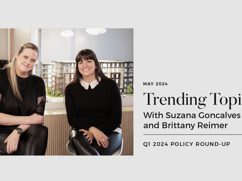In the April 2024 edition of the Presale Pulse Trending Topic, our hosts, Suzana Goncalves and Brittany Reimer dive into the Q1 2024 Policy Round Up.