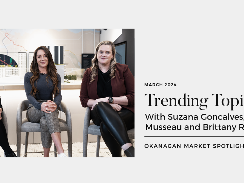 In the March 2024 edition of the Pre-Sale Pulse Trending Topic, hosts Suzana Goncalves and Brittany Reimer welcome special guest Taylor Musseau to discuss the real estate dynamics of the Okanagan region.